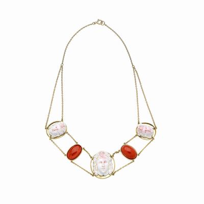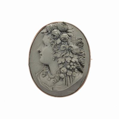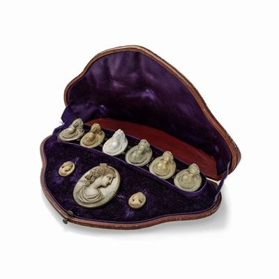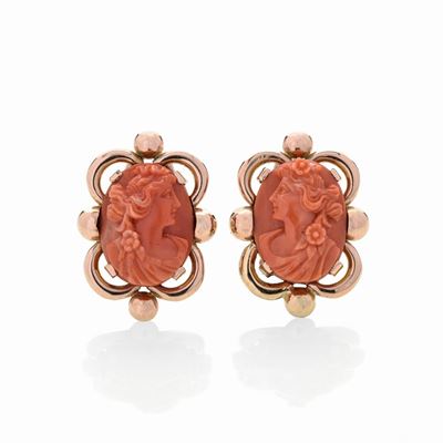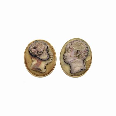 Paio DI Bottoni in Oro Giallo 18k e Cammeo in Pietra Dura