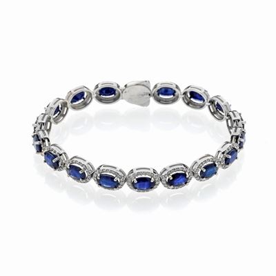 Bracciale in Oro Bianco 14k, Diamante e Zaffiri Naturali