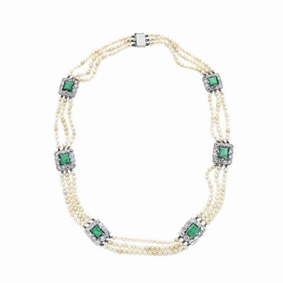 Anello in Oro Bianco e Oro Giallo 18k, Diamanti e Smeraldo
