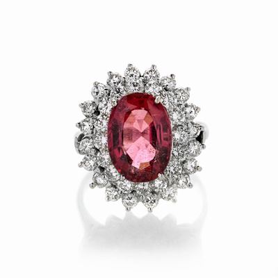 Grande Anello a Margherita in Oro Bianco 18k, Diamanti e Tormalina Rosa