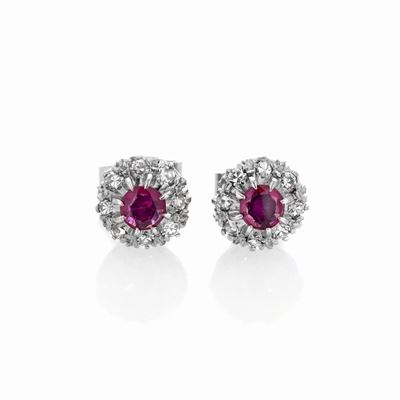 Paio DI Orecchini in Oro Bianco 18k, Diamanti e Rubini