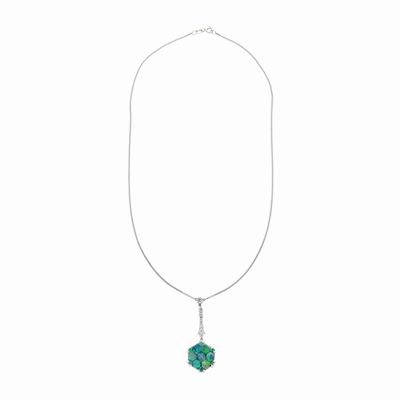 Collana in Oro Bianco 18k, Diamanti e Opale
