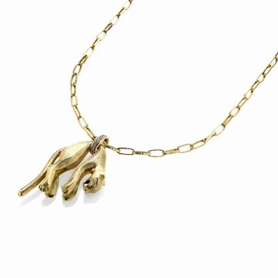 Grande Pendente Pantera con Lunga Catena a Maglie Intrecciate in Oro Giallo 18k e Diamanti