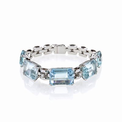 Bracciale in Oro Bianco 18k , Diamanti e Acquemarine