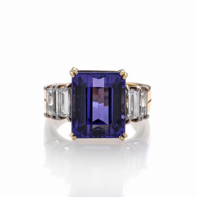 Anello in Oro Giallo 18k, Diamanti e Tanzanite