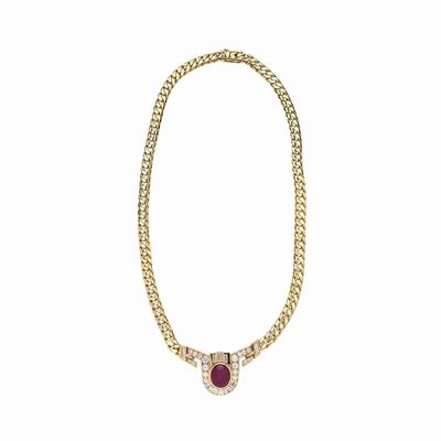 Girocollo in Oro Giallo 18k, Diamanti e Rubino