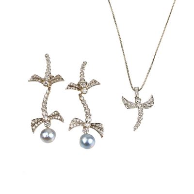 Paio di orecchini in oro bianco 18 kt e perle coltivate
