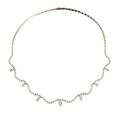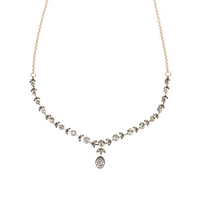 Catena con parte centrale foreale in oro giallo 18 kt, argento e diamanti
