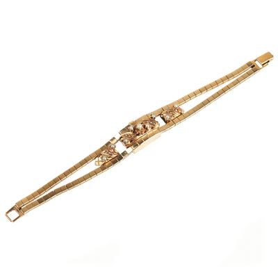 Braccialetto in oro giallo 18 kt e corallo rosso, due anelli e una spilla farfalla in oro 18 kt