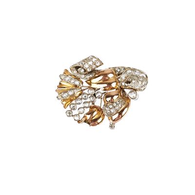 Clip fantasia in oro giallo 18 kt, oro bianco e diamanti
