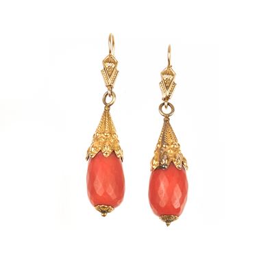 Paio di orecchini pendenti in oro giallo 9 kt e corallo rosso