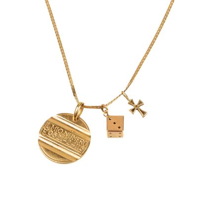 Catena a maglie con tre charms in oro giallo 18 kt
