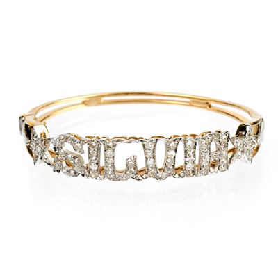Grande bracciale contrariè in oro giallo 18 kt, argento, diamanti e zaffiri e anello en suite