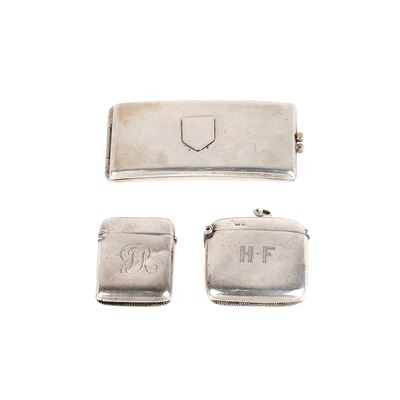Due portafiammiferi inglesi e un portasigarette in argento 800