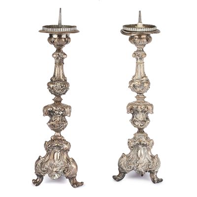 Coppia di candelieri a colonna in argento 800