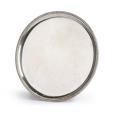 Vassoio circolare in argento 800, decoro San Marco