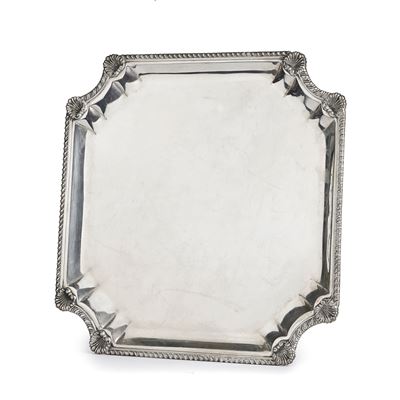 BRANDIMARTE vassoio quadrangolare in argento 800 con bordo San Marco e conchiglie