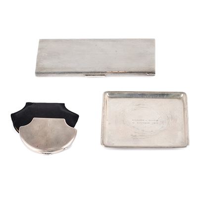 Portacipria conchiglia e vassoietto in argento 800 e grande portasigarette in argento 925