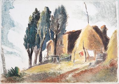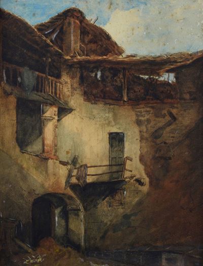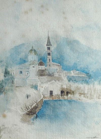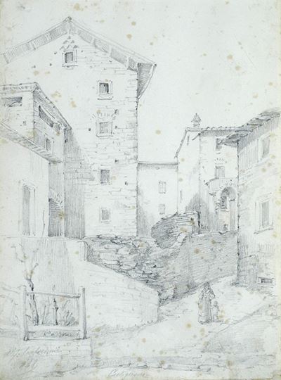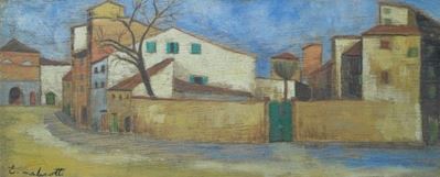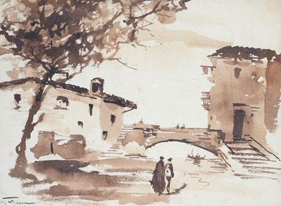 Paesaggio con case e ponte