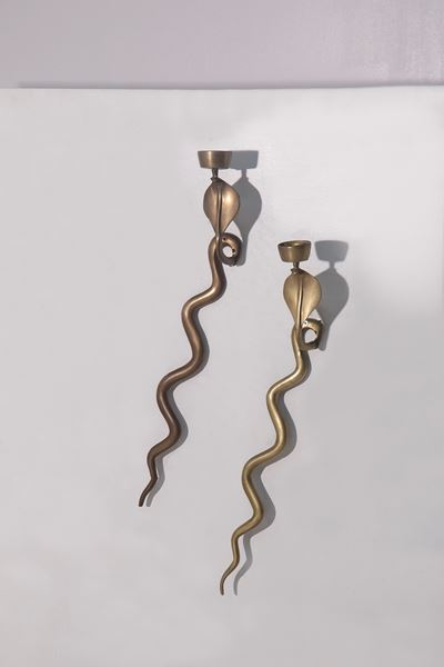 Grande lampada da parete italiana stile Déco in ottone nichelato