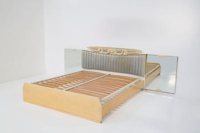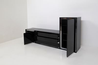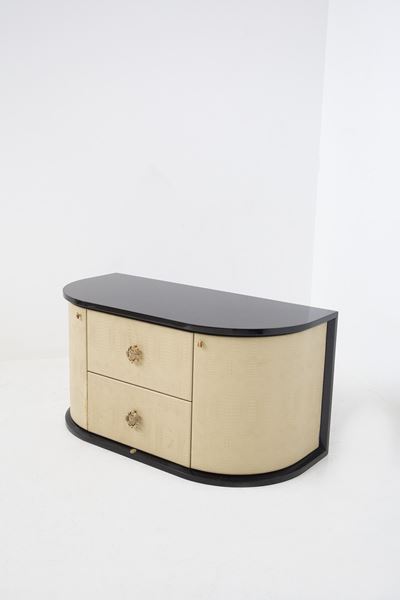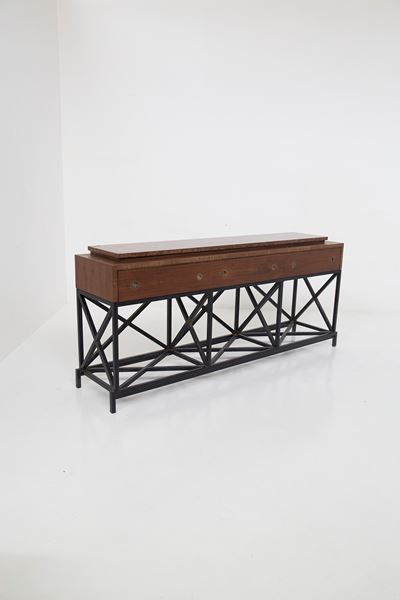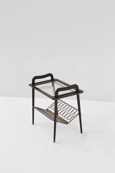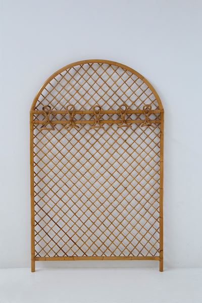 Carrello Da Bar Italiano In Bambù, Rattan E Vetro Nero