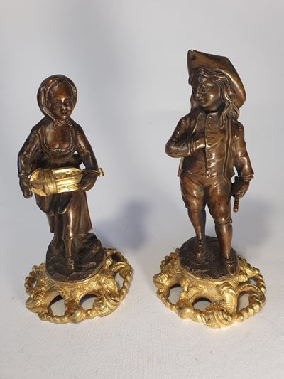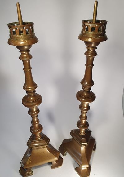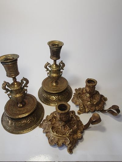 Coppia di candelieri bulinati e coppia di candelieri barocchetto