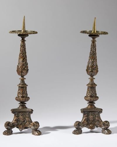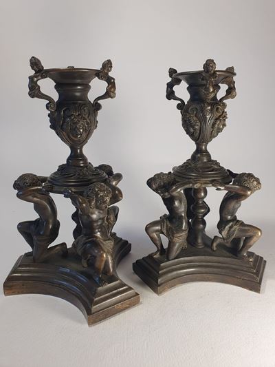 Coppia di candelabri istoriati (da modelli rinascimentali)