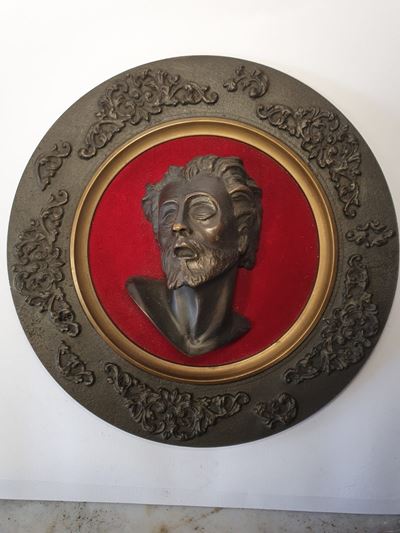 Vassoio da parata con profilo di imperatore romano e panoplie