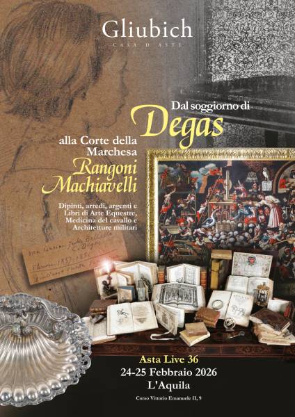 Siamo lieti di presentare l'asta "Dal soggiorno di Degas alla corte della Marchesa Rangoni Machiavelli", un evento esclusivo che si terrà il 23 e 24 febbraio 2026. Questa vendita rappresenta un'opportunità unica per collezionisti e appassionati d'arte di acquisire opere di straordinaria importanza storica e artistica, provenienti da collezioni private di prestigio.