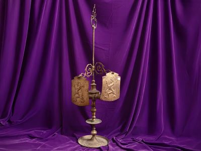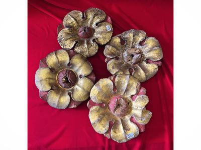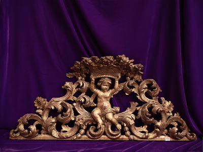 Serie di tre cartagloria in legno inatgliato, dorato e laccato