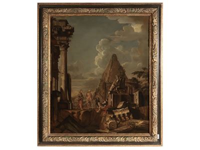 Paesaggio con viandanti e una città fortificata, da Guercino