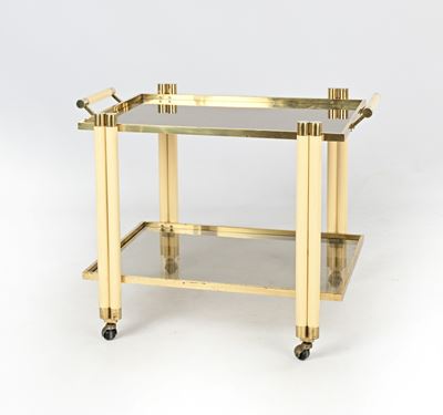 Carrello in ottone con piani in vetro
