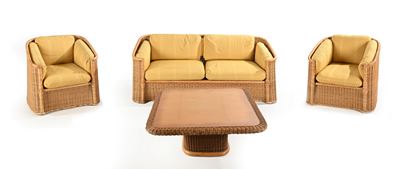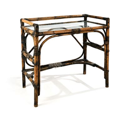 Scrittoio in bambù e vimini e piano in cristallo
