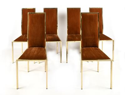 Sedia in ottone e rivestimeno in velluto marrone