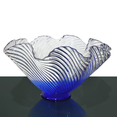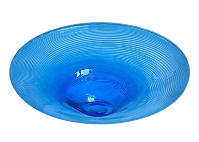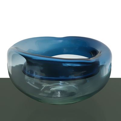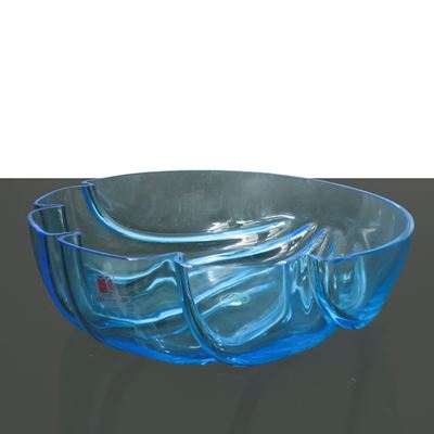 Centrotavola in vetro trasparente con bordo ondulato e fondo blu