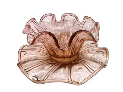 Ciotola in vetro di Murano opalescente rosa e bordo dorato