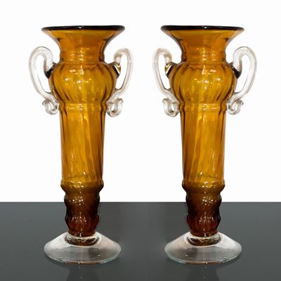 Coppia di vasi, Produzione Muranese nello stile di Flavio Poli.