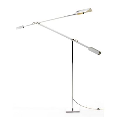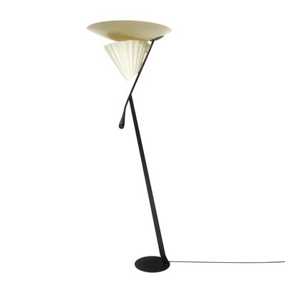 Piantana con diffusore e struttura in metallo laccato, controdiffusore in pergamenoide