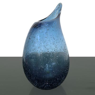 Vaso oblugo in vetro azzurro opaco nello stile Carlo Scarpa