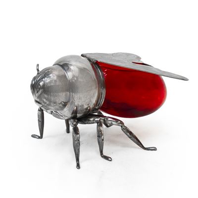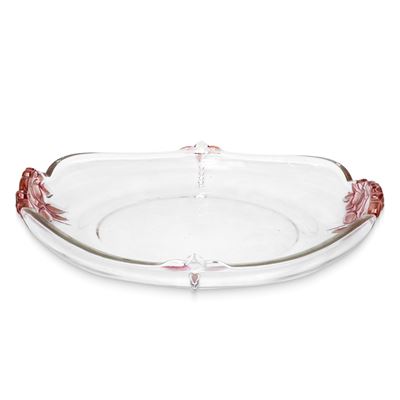 Centrotavola in vetro con fiori e libellule in rilievo ai lati