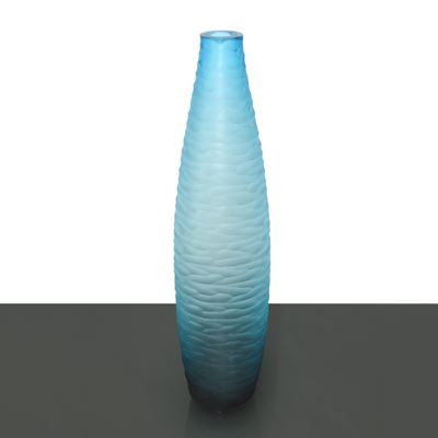 Vaso di forma cilindrica in vetro sommerso e incamiciato nei toni del blu