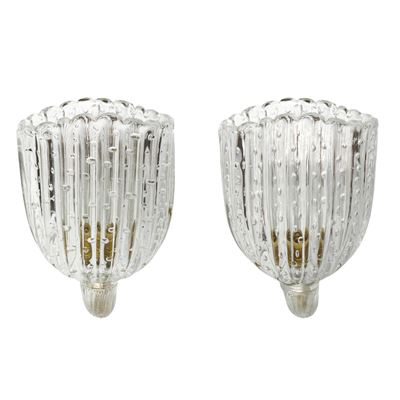 Lampada da muro Venini in vetro di Murano lattimo, disegno Tina Aufiero