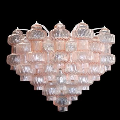Lampada a sospensione in vetro di Murano rosa e ottone