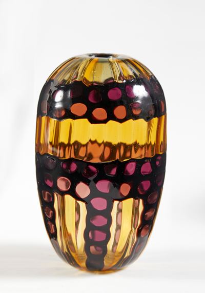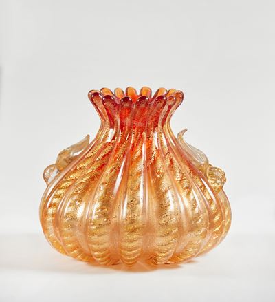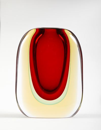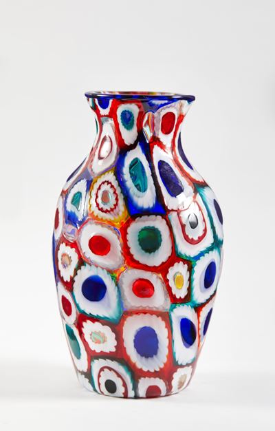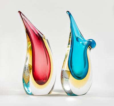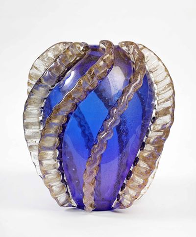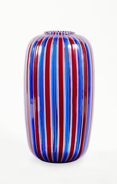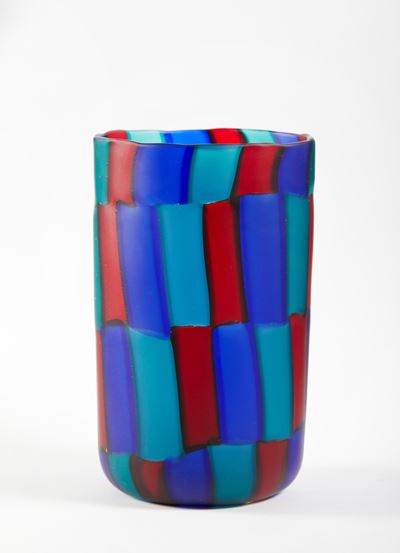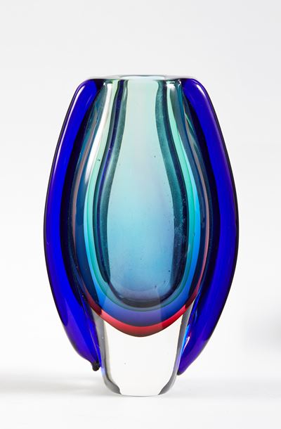 Vaso In Vetro Soffiato Rosso E Blu Venini