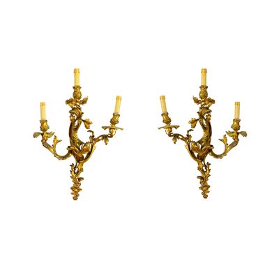 Coppia DI Appliques In Bronzo Dorato A Tre Luci