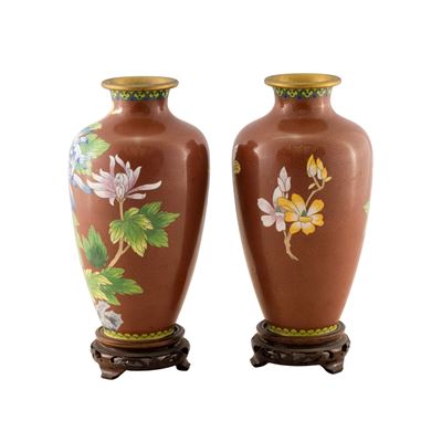 Coppia DI Vasi In Smalto Cloisonné