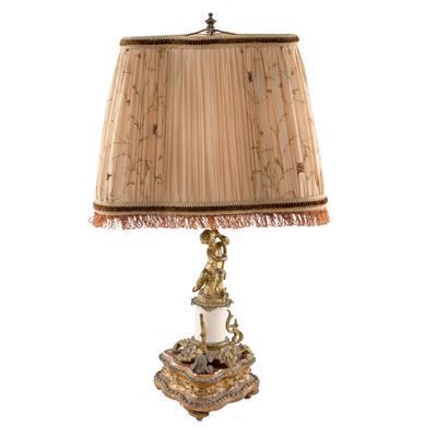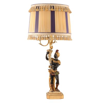 Lampada Da Tavolo In Legno Laccato, Dorato Ed Intagliato
