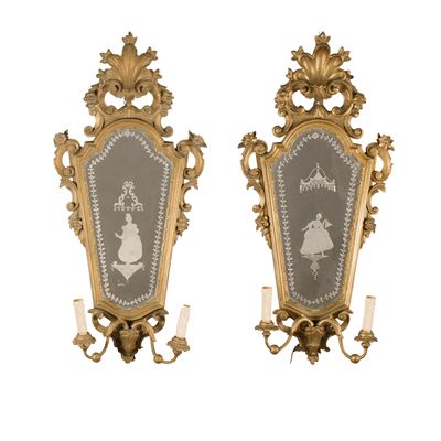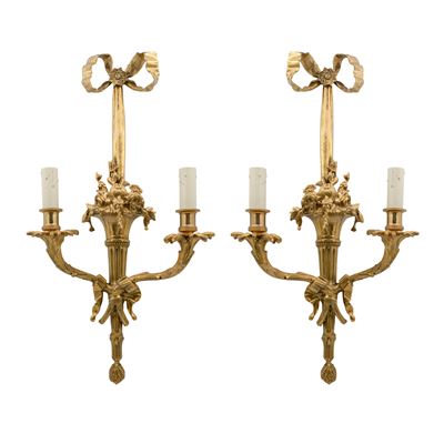 Coppia DI Appliques In Bronzo Dorato A Due Luci