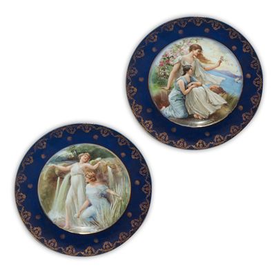 Coppia di Piatti da muro in porcellana di Vienna, con decoro in oro zecchino sulla tesa