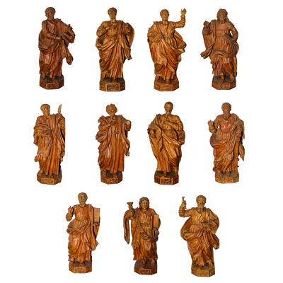 Gruppo di 11 sculture di apostoli in legno d'acero duro